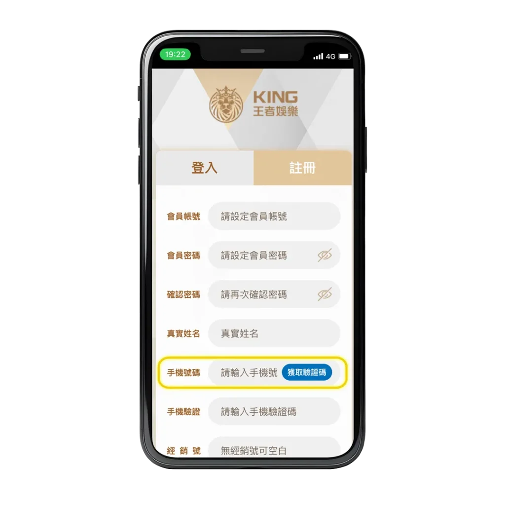 4. 輸入手機號碼,點選「獲取驗證碼」進行簡訊驗證